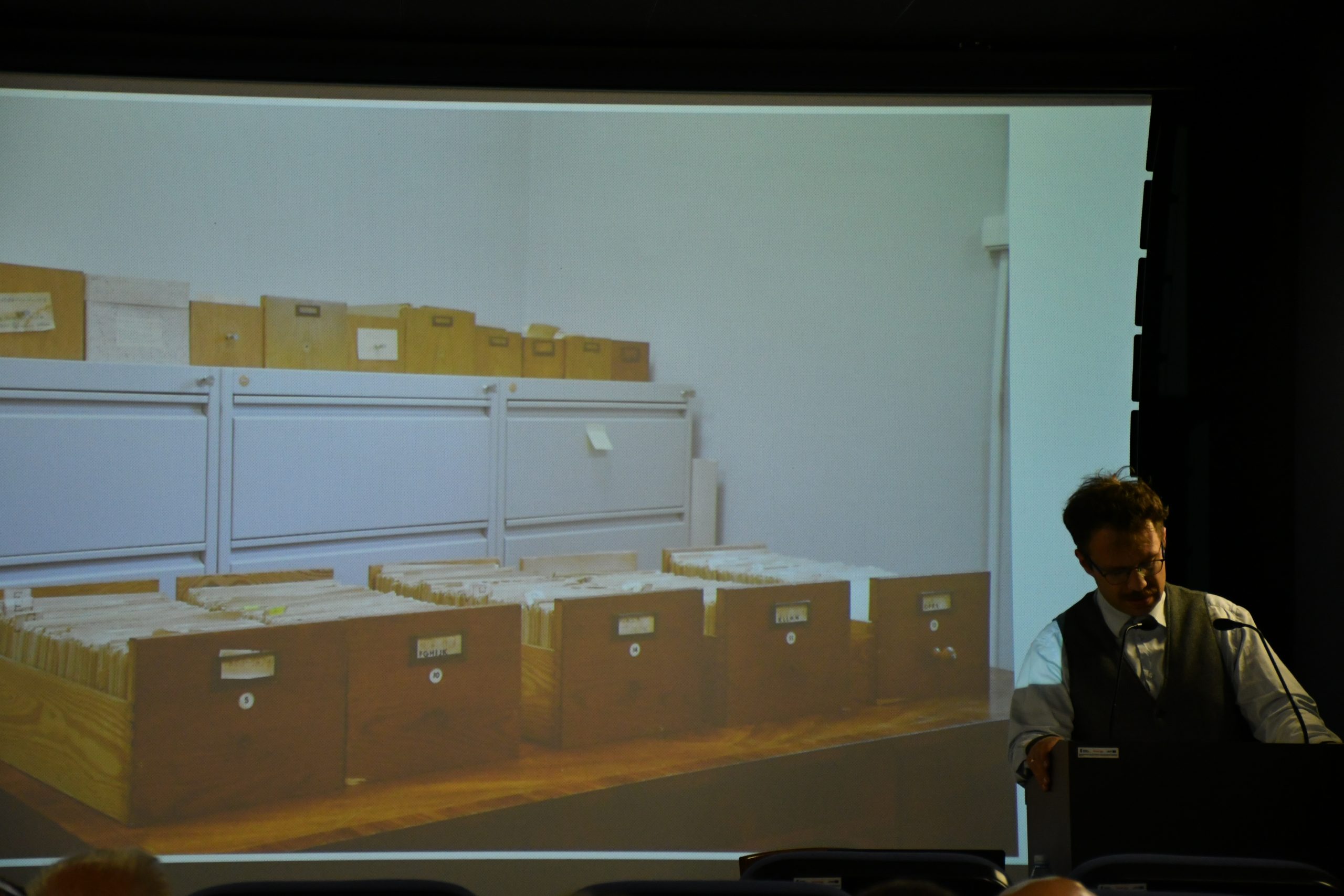 𝐁𝐚𝐫𝐭ł𝐨𝐦𝐢𝐞𝐣 𝐒𝐨𝐤𝐨ł𝐨𝐰𝐬𝐤𝐢 zaprezentował historię powstawania tej unikalnej dokumentacji, sięgającej lat 60. XX wieku, oraz opowiedział o digitalizacji zbiorów, analizach archiwalnych i kontekście działania carskich służb śledczych.