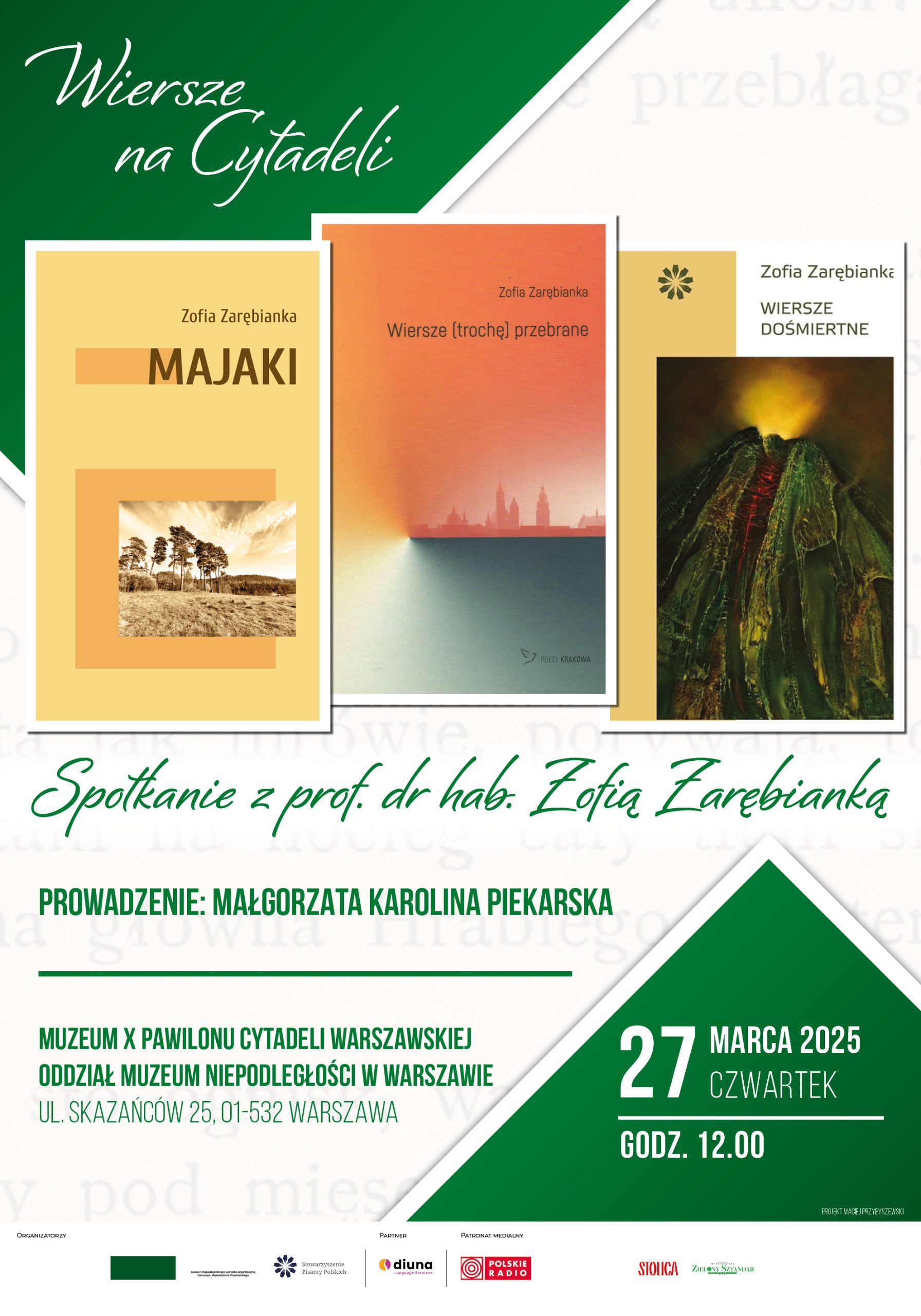 Już 27 marca o godz. 12:00 odbędzie się kolejna odsłona naszego poetyckiego cyklu Wiersze na Cytadeli! Tym razem naszym gościem będzie dr hab. Zofia Zarębianka – poetka, eseistka, profesor Uniwersytetu Jagiellońskiego, autorka licznych publikacji o literaturze i sacrum.