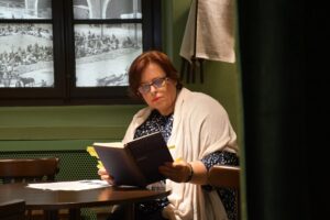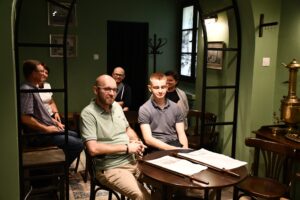 Dyskusję poprowadziła 𝐊𝐚𝐭𝐚𝐫𝐳𝐲𝐧𝐚 𝐋𝐢𝐩𝐬𝐤𝐚 𝐙𝐢𝐞̨𝐛𝐢𝐧́𝐬𝐤𝐚, która zabrała uczestników w poetycką podróż po stolicy – z nutą refleksji, uśmiechu i wzruszenia.
