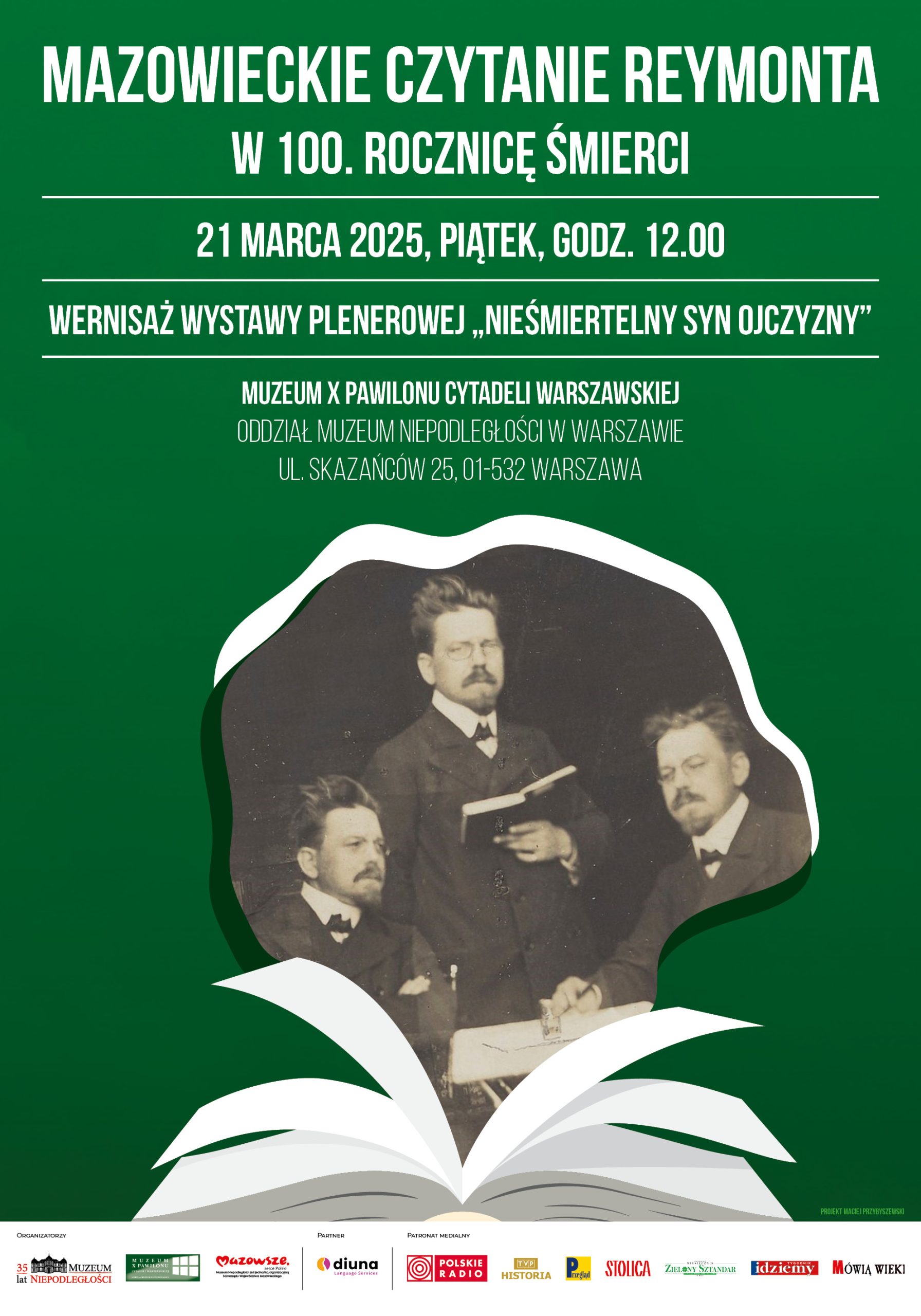 Przygotowaliśmy dla Was Mazowieckie czytanie Reymonta – fragmenty jego niezatartego dzieła w wykonaniu zaproszonych gości, które przeniosą nas w świat pełen emocji i literackich obrazów, które na zawsze wpisały się w historię polskiej literatury. Dodatkowo, zapraszamy na wernisaż plenerowej wystawy „Nieśmiertelny Syn Ojczyzny”, która z okazji 100. rocznicy przyznania Reymontowi Nagrody Nobla przybliży Wam życie i twórczość pisarza, ukazując, jak głęboko wpłynęły na naszą historię, kulturę i tożsamość narodową.