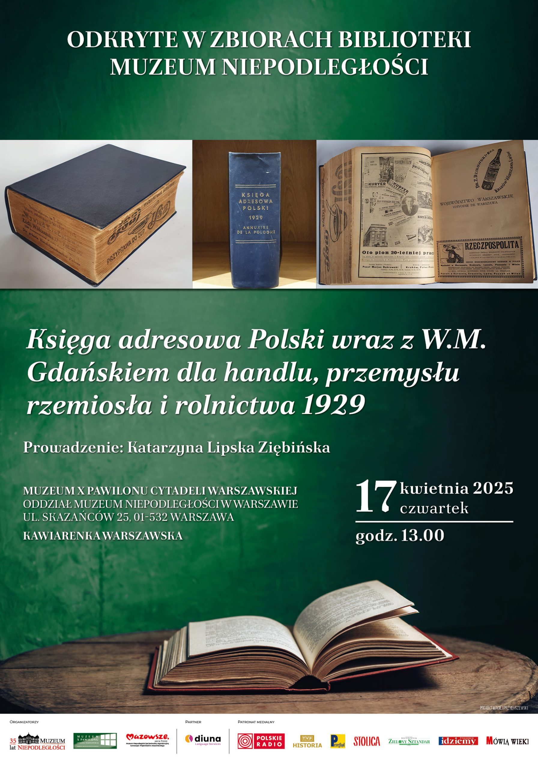 Zapraszamy 17 kwietnia (czwartek), na godz. 13:00, na pierwsze wydarzenie z nowego cyklu prezentującego ciekawe publikacje ze zbiorów naszej biblioteki. Przedstawimy pozycję – „Księgę adresową Polski wraz z W.M. Gdańskiem dla handlu, przemysłu, rzemiosła i rolnictwa 1929”.